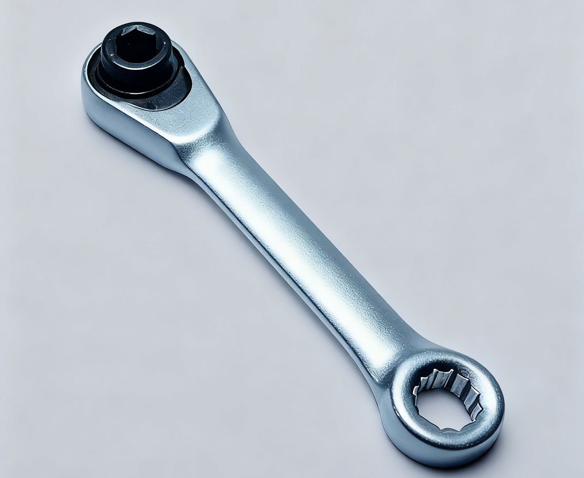 Этот быстрозажимной ключ с храповым механизмом на 72 зуба имеет регулируемую двухстороннюю поверхность для универсального и удобного использования.