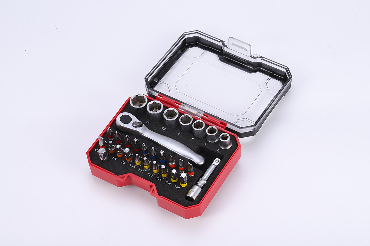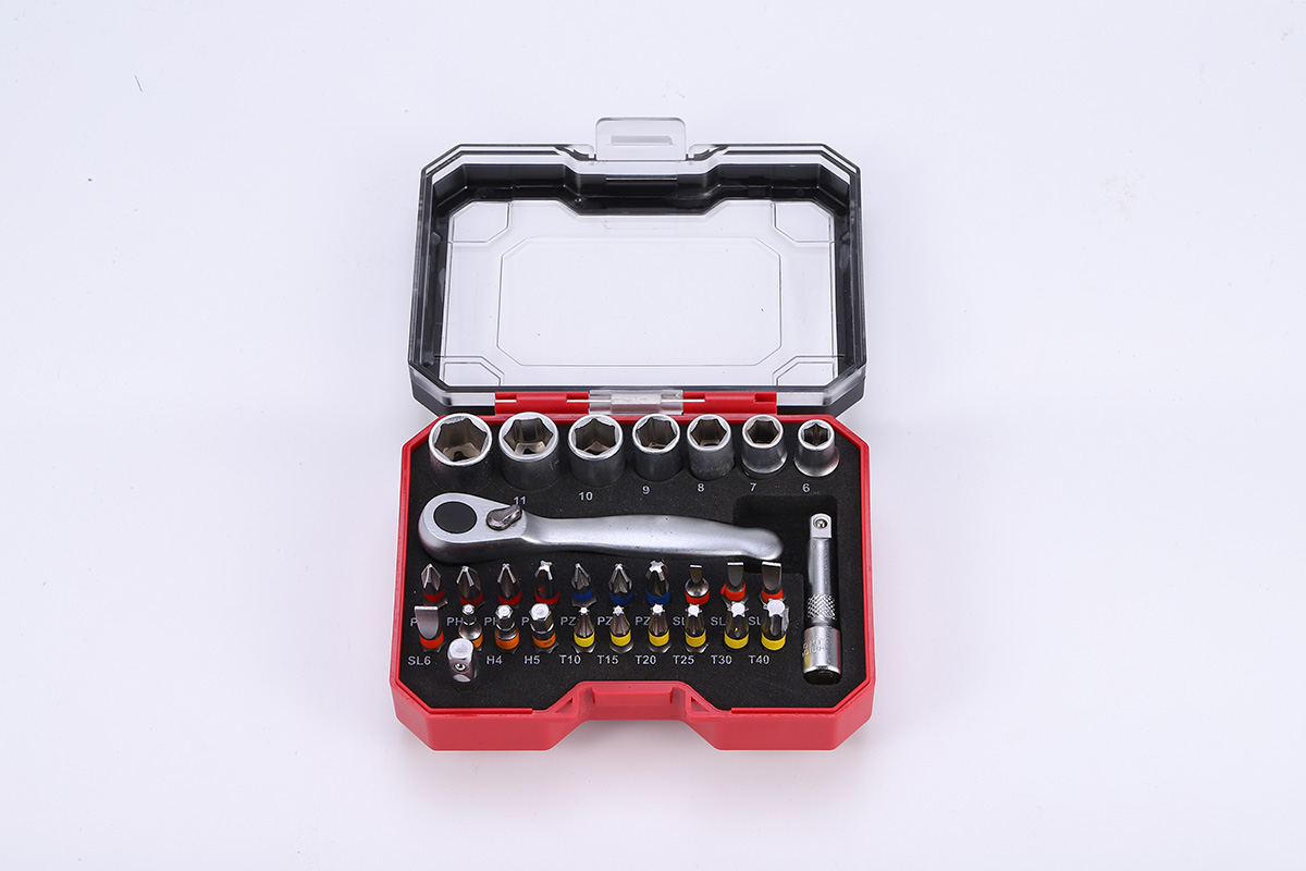 РАСПОЛОЖЕНИЕ > Главная > ЦЕНТР ПРОДУКТОВ > Набор отверток-бит > Набор из 30 бит с трещоткой и отверткой ·Термическая обработка для увеличения срока службы