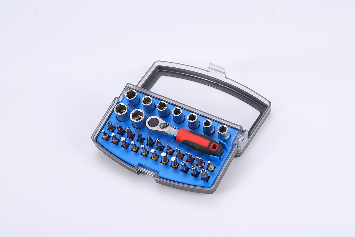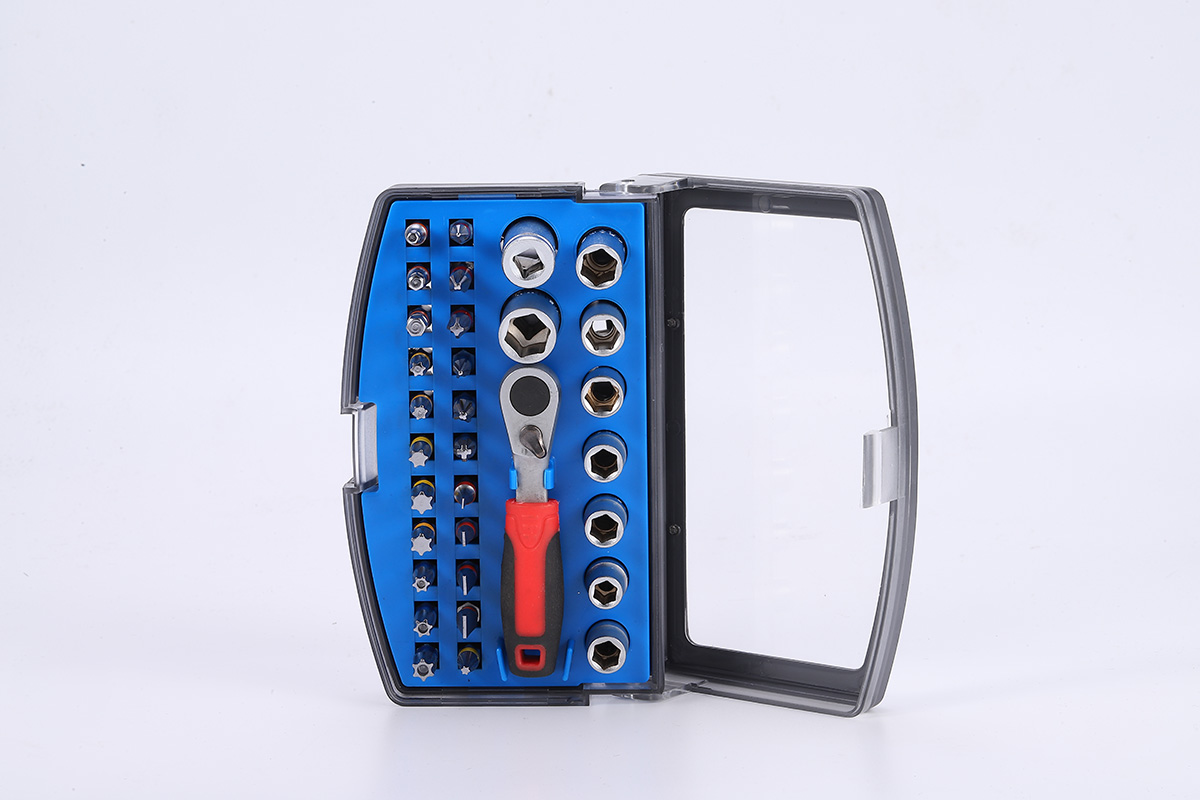 РАСПОЛОЖЕНИЕ > Главная > ЦЕНТР ПРОДУКТОВ > Набор отверток-бит > Набор из 32 головок и бит с трещоткой высококачественная сталь S2 обеспечивает высокую способность передачи усилия, долговечность и гибкость.